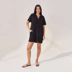 Lightweight Collared Knit Dress | Black