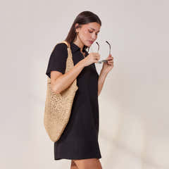 An effortless summer outfit, the Lightweight Knit Dress. Crafted from light and soft knit fabric, allowing a comfortable feel in a design that will enable your body to breathe. In a relaxed fit, including stylish side pockets, a slight drop shoulder and a V-neck collar.