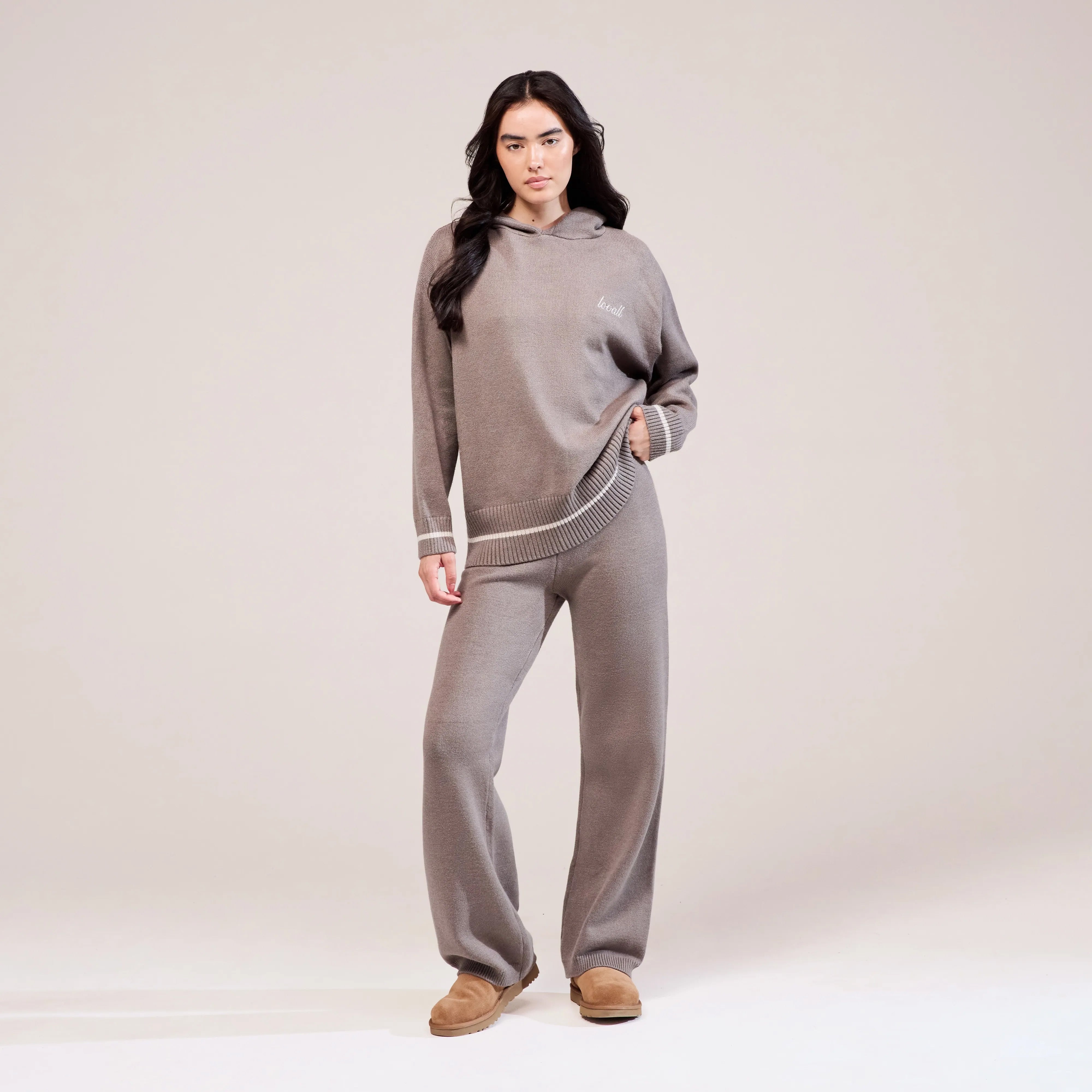 The Soft Knit Hooded Jumper takes the relaxed design of a jumper and blends it with the elements of a hoodie. We have crafted ultimate, effortless comfort that you can throw on with any look. Designed with premium soft fabric in a relaxed design, featuring stylish dropped shoulders. The knit style is gentle on your skin and perfect for cosying up in, and the look is finished with beautiful scripted branding to complement the soft style.